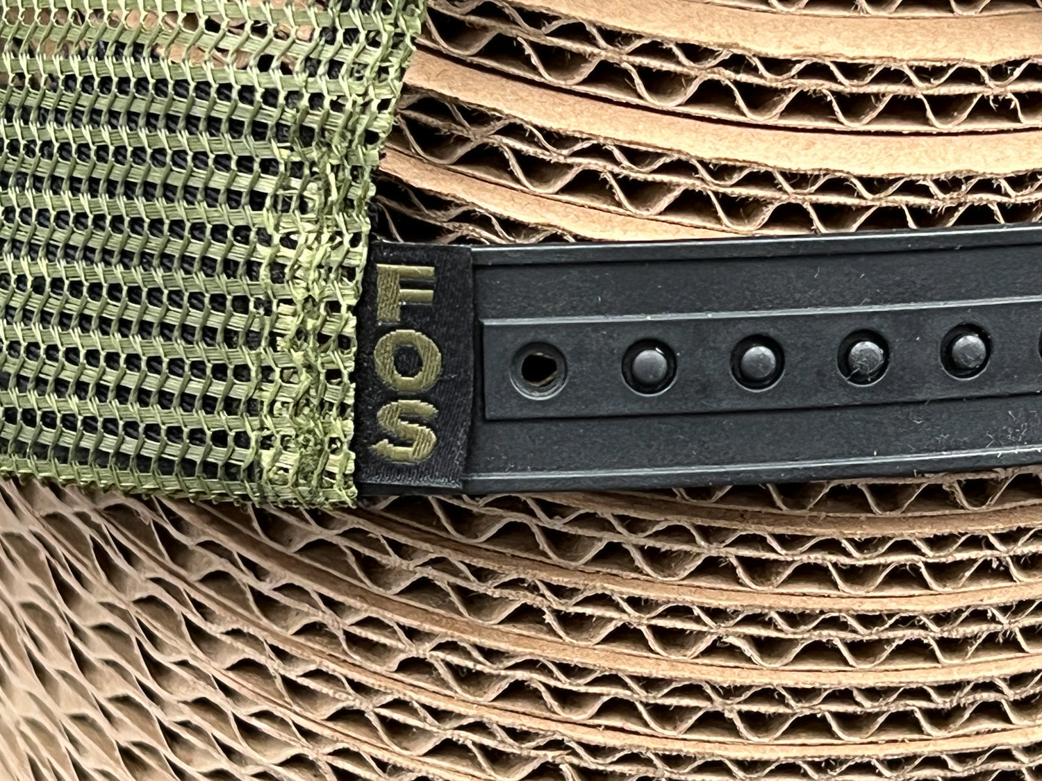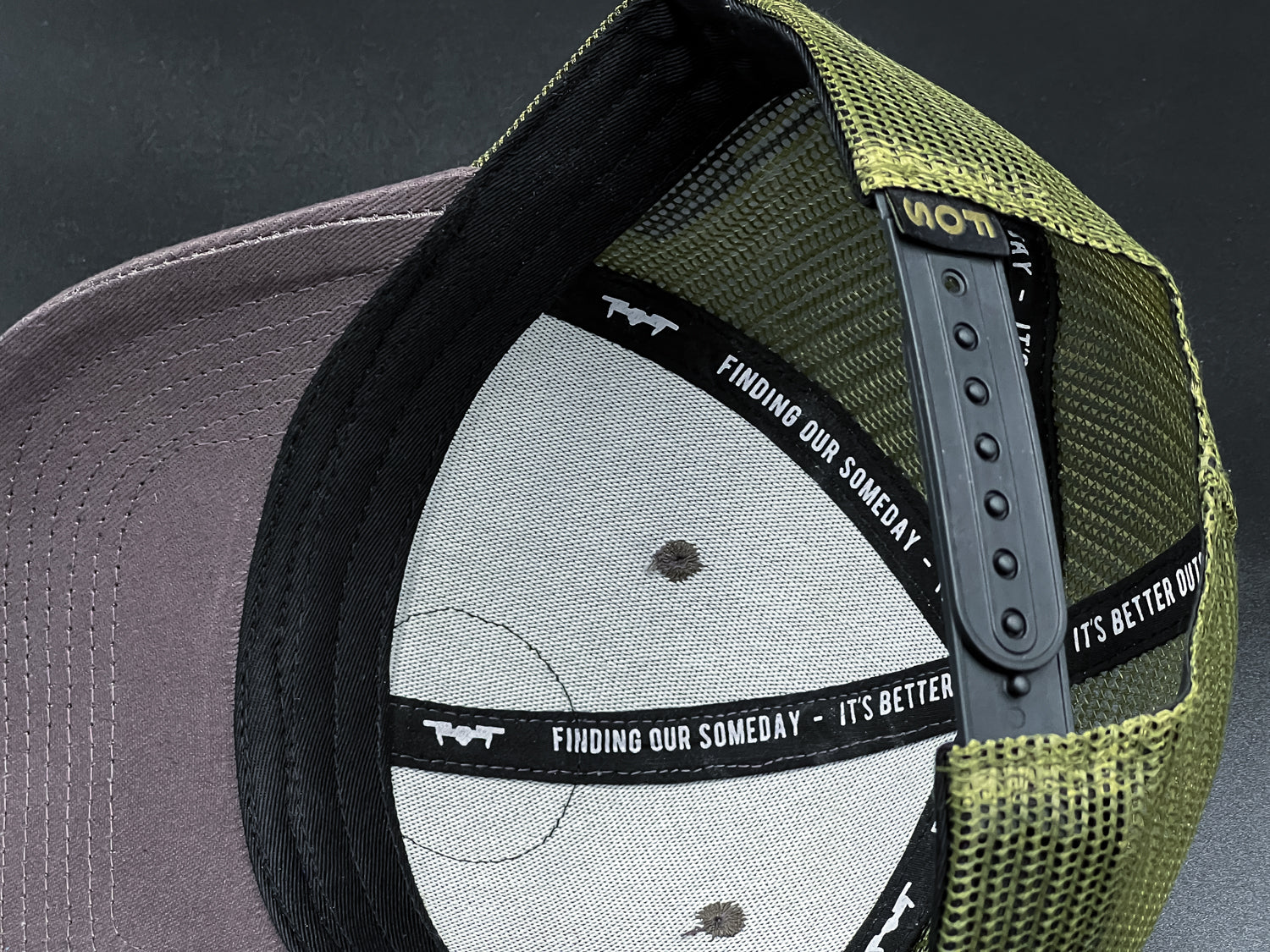 This is FOS's first Patriotic Edition It's Better Outside hat with grey front featuring an Army green and black patch, Army green mesh on the back, and ghosted black American flag on the side.